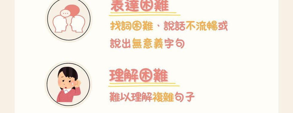 · 表達困難:找詞困難、說話不流暢或說出無意義字句